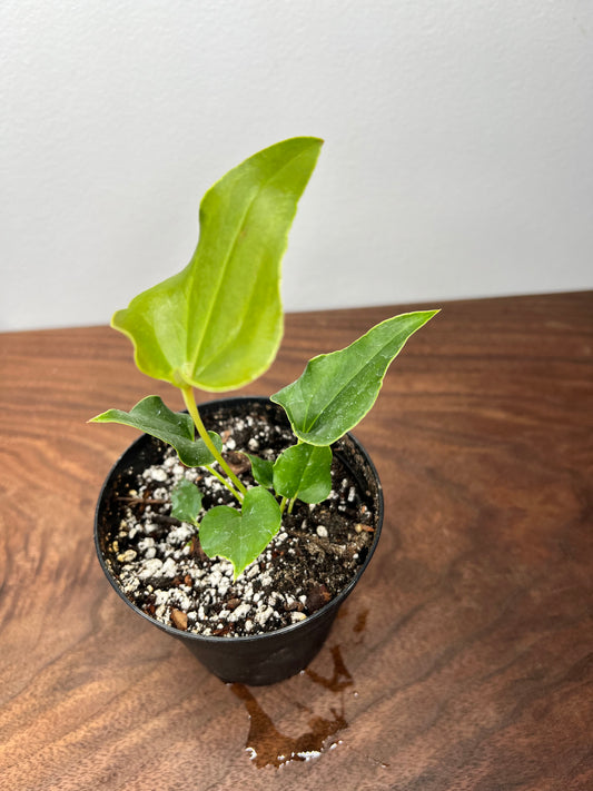 Anthurium typically refers to species or cultivars within the Anthurium genus that produce large, strikingly beautiful leaves, often accompanied by an eye-catching flower spathe. One of the most notable examples is Anthurium warocqueanum, commonly known as the "queen anthurium." This species is particularly famous for its large, elongated, velvety leaves that can grow up to 3 feet in length, making it a standout in any collection.