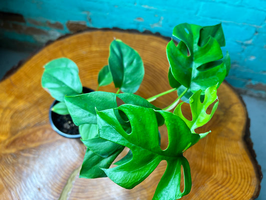 Monstera is a popular genus of tropical plants native to the rainforests of Central and South America, renowned for their distinctive, large, glossy leaves that often develop unique splits and holes as they mature—giving rise to the common name "Swiss cheese plant." The most well-known species, Monstera deliciosa, is celebrated for its impressive foliage and its ability to thrive as a low-maintenance houseplant. Monstera plants grow best in bright, indirect light, though they can tolerate some shade. They prefer well-draining, slightly acidic soil and require regular watering, allowing the soil to dry out between waterings to prevent root rot. Monstera are also relatively tolerant of varying humidity levels, though they appreciate higher humidity typical of their native tropical environment. As a fast-growing vine, Monstera can benefit from occasional pruning and support, such as a moss pole, to encourage upright growth. With its bold, eye-catching appearance, Monstera has become a beloved addition to interior spaces, adding a touch of the exotic to homes and offices.