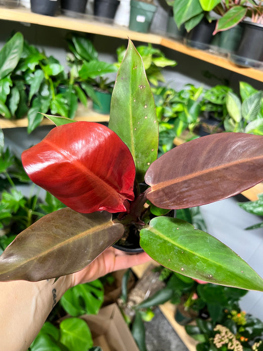 Philodendron is a large and diverse genus of tropical plants native to the Americas, particularly Central and South America, and is well-known for its attractive, easy-to-care-for qualities. These plants are often characterized by their glossy, heart-shaped leaves, although their shape and size can vary greatly depending on the species. Some common varieties, like Philodendron hederaceum (the heartleaf philodendron), are vining plants that can trail or climb, while others, such as Philodendron bipinnatifidum (selloum), are bushier and feature larger, deeply lobed leaves. Philodendrons are typically low-maintenance and thrive in bright, indirect light, though they can tolerate lower light conditions. They prefer well-draining, loamy soil and need to be watered when the top inch of soil feels dry, but overwatering should be avoided to prevent root rot. Being tropical plants, philodendrons appreciate moderate to high humidity, though they can adapt to normal indoor humidity levels. Known for their air-purifying qualities, philodendrons make excellent houseplants, adding both beauty and functionality to indoor spaces.