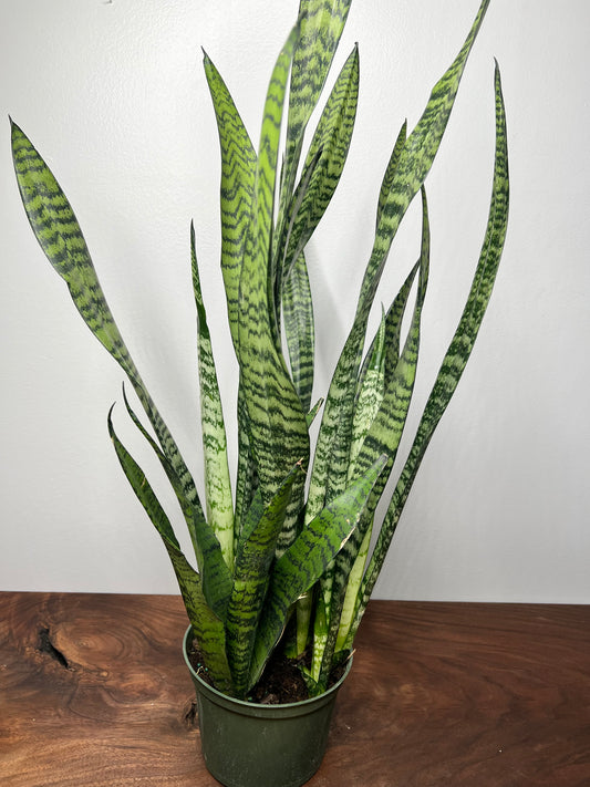 Snake plants, also known as Sansevieria or Mother-in-law’s Tongue, are hardy, low-maintenance houseplants native to West Africa. Characterized by their tall, upright leaves that resemble sword blades, snake plants feature striking variegation in shades of green, yellow, or silver. These plants are incredibly resilient and can tolerate a variety of conditions, including low light, drought, and fluctuating temperatures, making them an ideal choice for beginners or busy individuals. Snake plants thrive in well-draining soil and need only occasional watering, as they are susceptible to root rot if left in soggy soil. They prefer indirect light but can adapt to low-light environments, making them suitable for spaces with limited sunlight. In addition to their ease of care, snake plants are also known for their air-purifying qualities, as they absorb toxins and release oxygen, improving indoor air quality. With their bold, architectural appearance and minimal care requirements, snake plants have become a popular choice for any space.