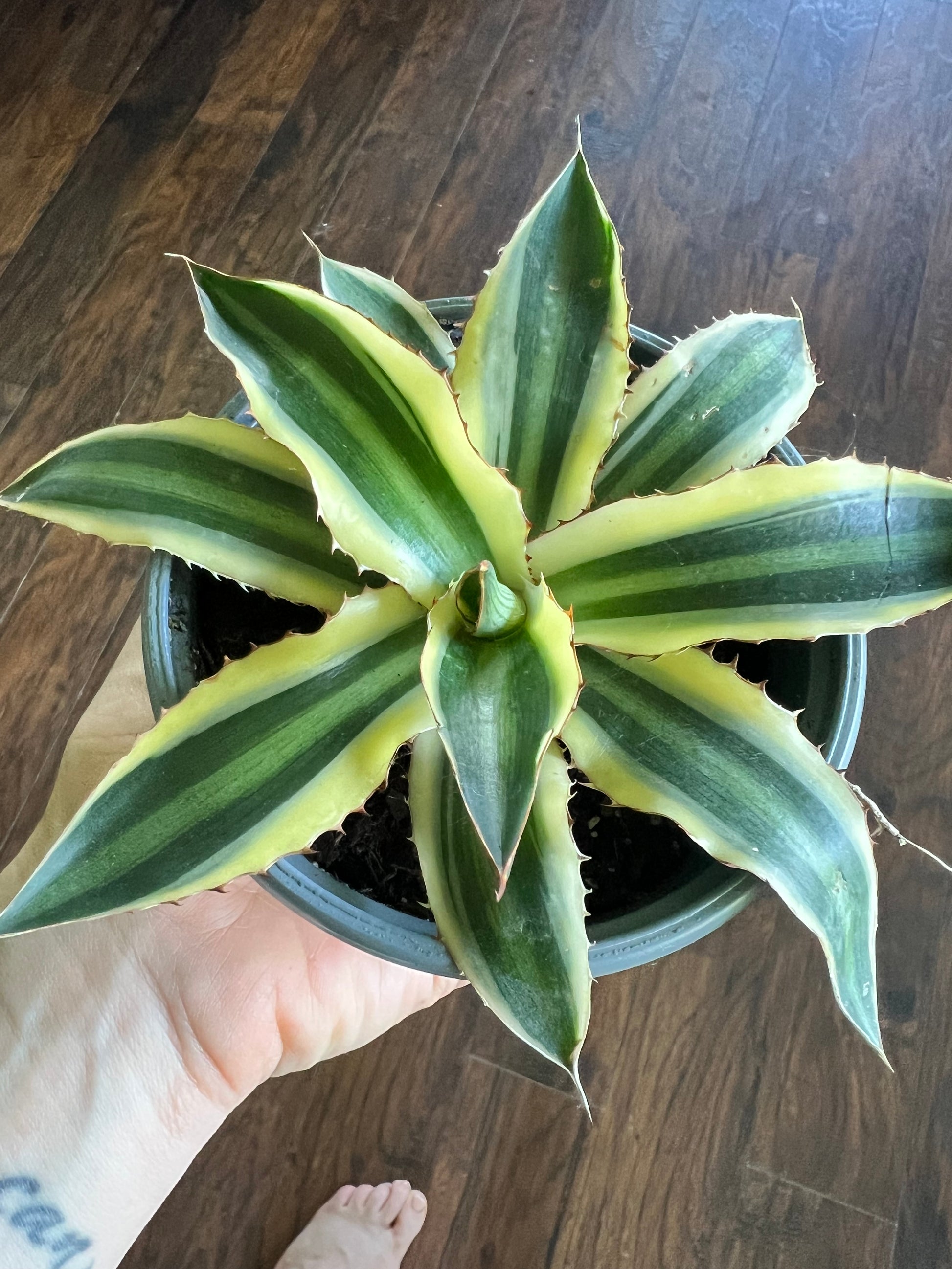 When it comes to care, agaves are wonderfully low-fuss. Use a very well-draining soil mix (cactus or succulent blend works well), and let the soil dry completely between waterings. Overwatering is the #1 killer — think drought-tolerant, not thirsty. Fertilize sparingly during the warm months with a cactus-friendly fertilizer. Agaves are generally pest-resistant, but watch for mealybugs or root rot if overwatered. With the right setup, agaves can live for years — and while many only flower once in their lifetime (a dramatic spike of blooms), it's a sign of a happy, mature plant.