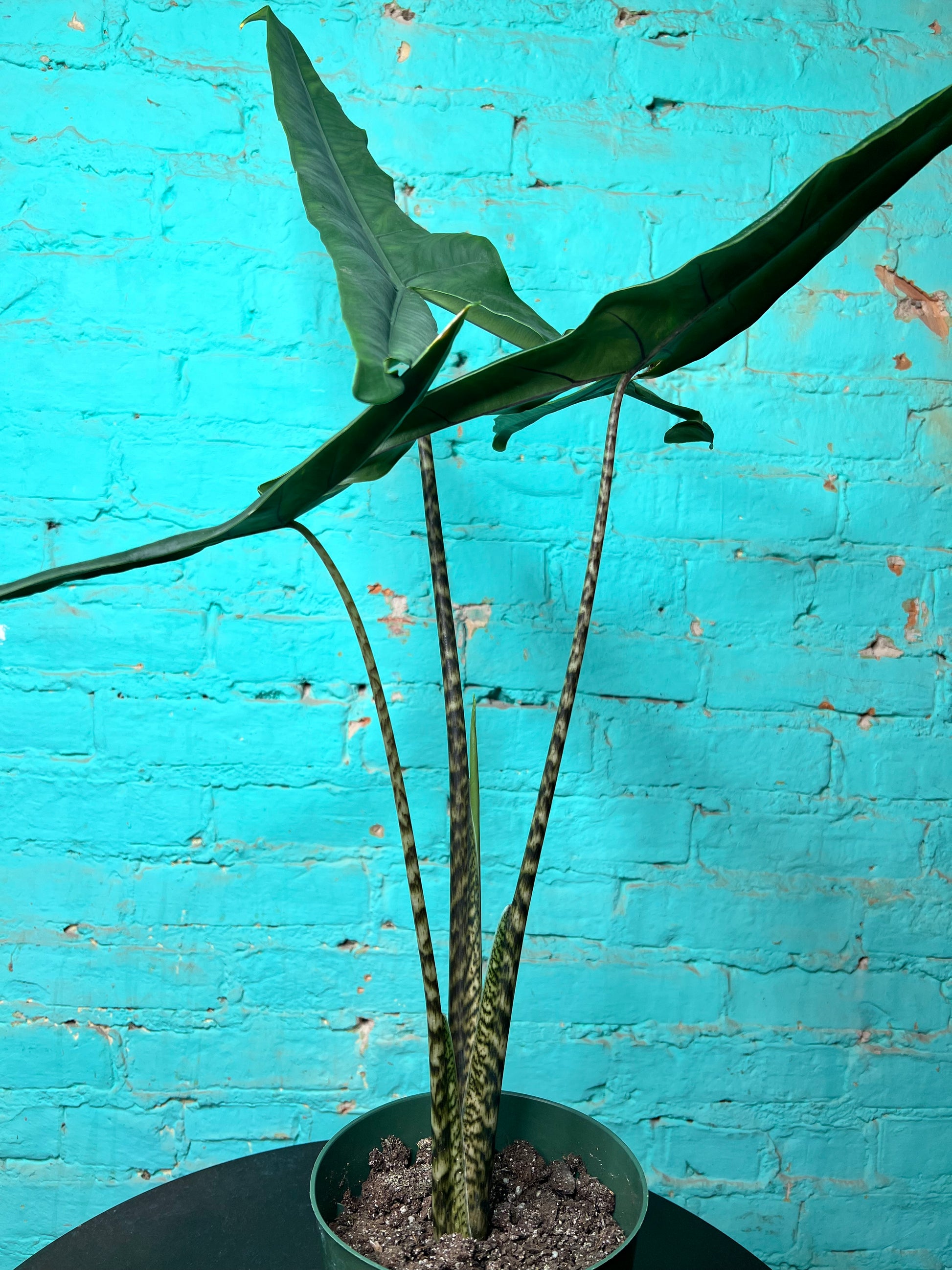 Alocasia, commonly known as elephant's ear, is a striking tropical plant that needs warm, humid conditions, and is usually grown as a houseplant. It is prized for its large heart-shaped or arrow-shaped leaves and the foliage of some varieties has prominent veins or variegation. In the summer, alocasia grows quickly, producing a new leaf every week.