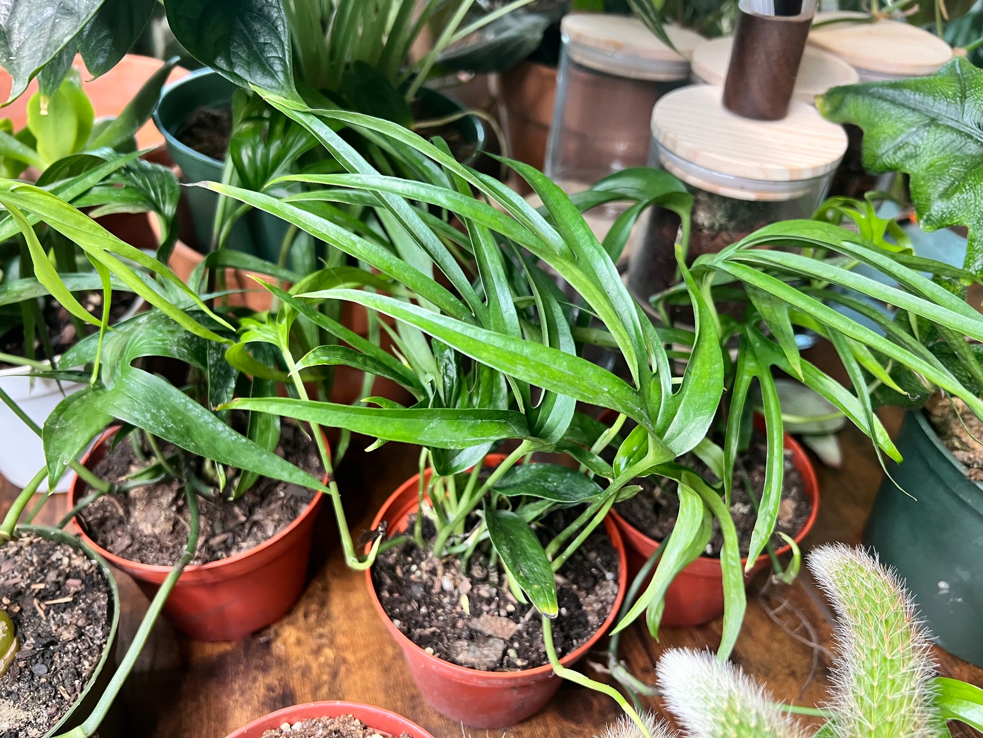 Amydrium zippelianum is a rare tropical aroid native to Southeast Asia, including regions of Indonesia and the Philippines. It’s known for its long, glossy green leaves that develop deep fenestrations (natural holes or splits) as the plant matures—similar to a Monstera but with a more elongated, dramatic look. This climbing or trailing beauty brings a wild, jungle-like vibe to any indoor space and is still relatively uncommon in houseplant collections.