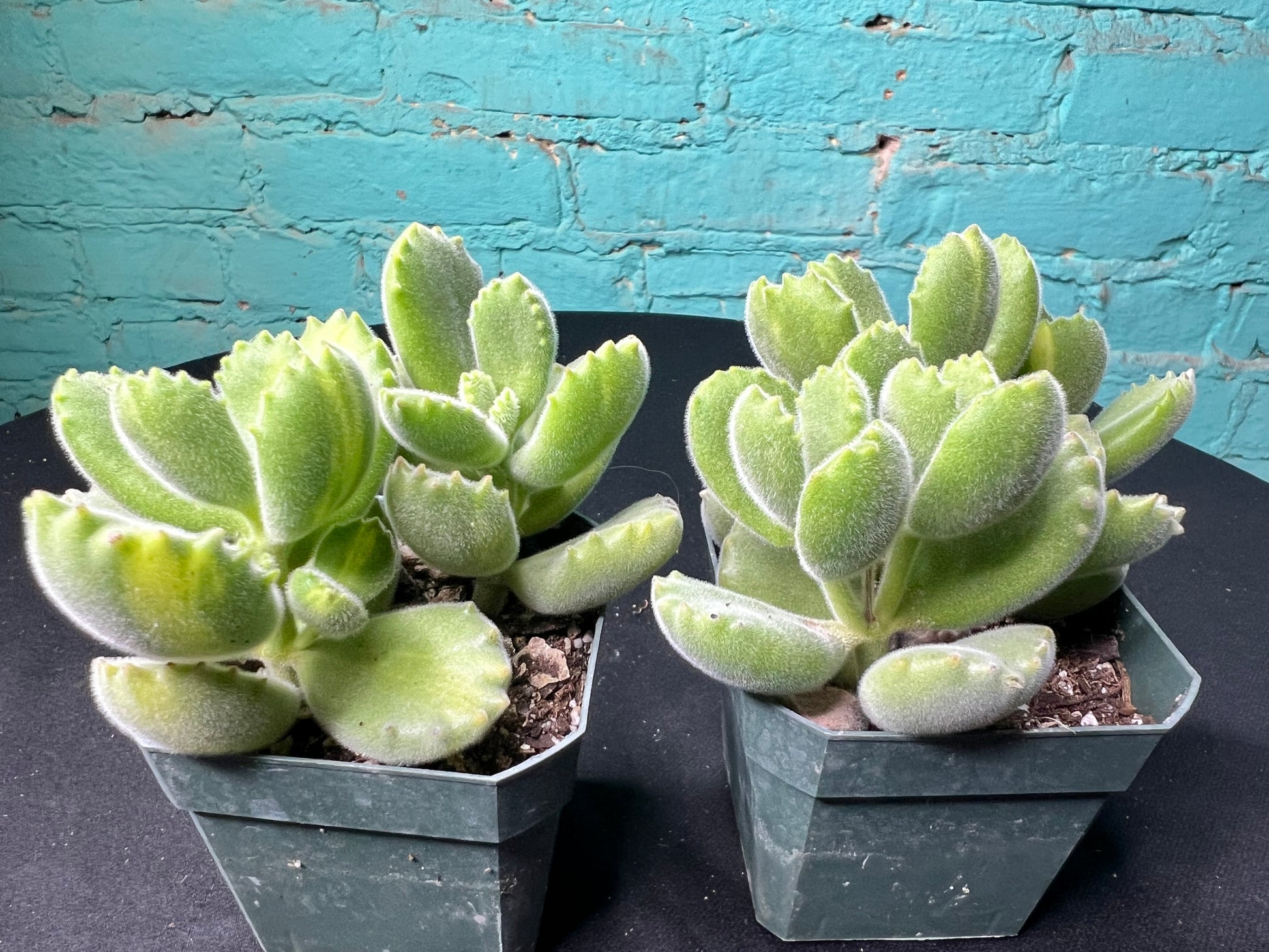 Bear Paw Succulent (Cotyledon tomentosa) is a compact, fuzzy succulent known for its thick, soft leaves that end in tiny “claw” tips, often edged in red. The velvety texture and unique paw-like shape make it a standout, especially in small pots or grouped with other succulents. It stays relatively low and bushy, giving it a full, plush look that feels different from typical smooth-leaf succulents.