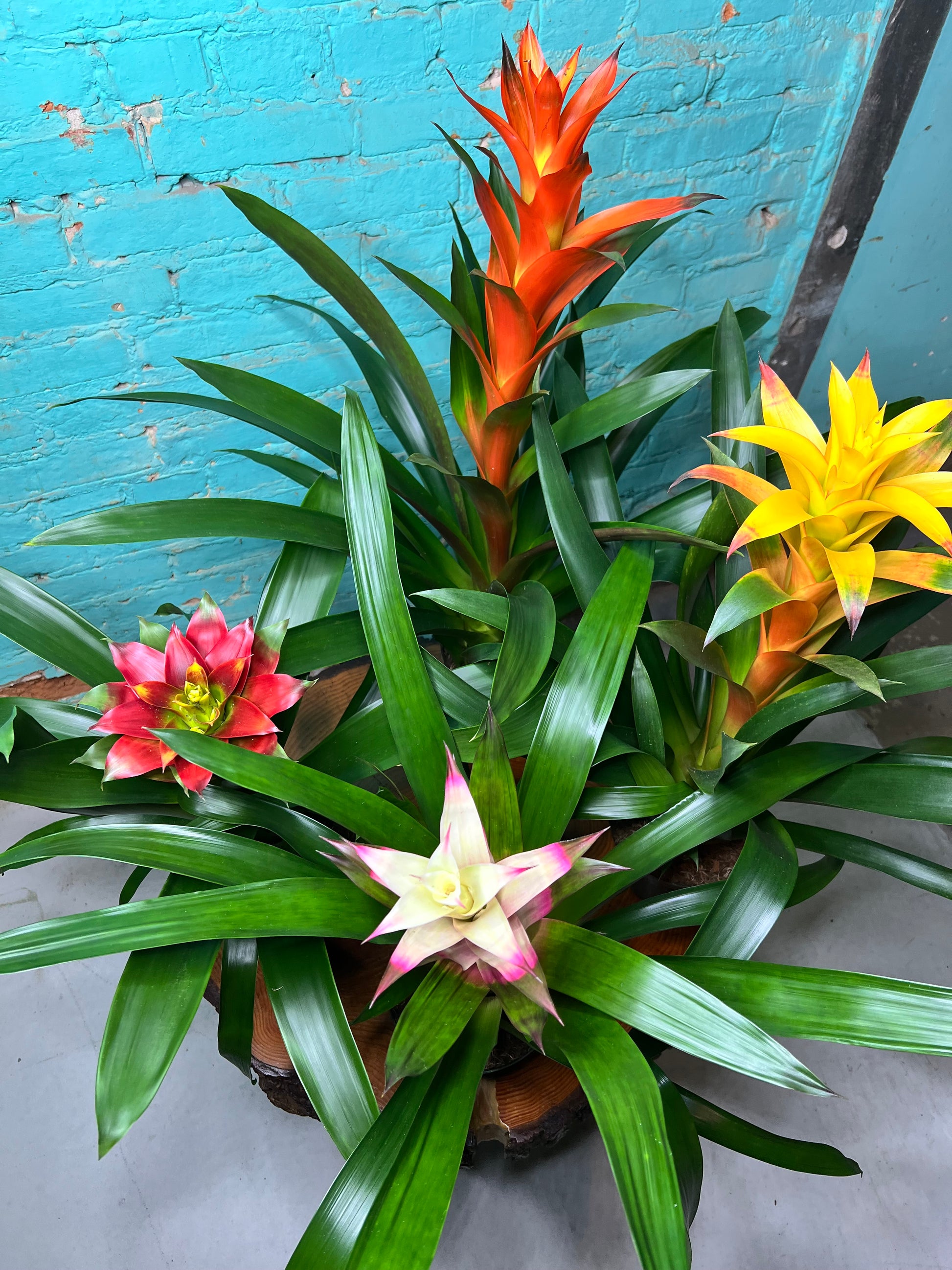 Blooming: Bromeliads bloom once in their lifetime. Once the flower fades, you can remove the dead bloom, but don’t be discouraged—pups will grow, and the cycle continues!