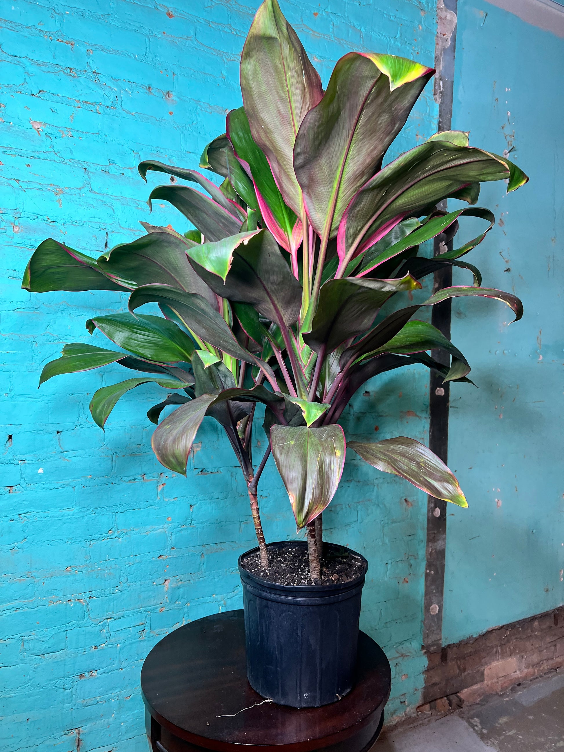 The Harlequin Cordyline (Cordyline fruticosa 'Harlequin') is a colorful tropical plant known for its striking foliage, which features a vibrant mix of pink, purple, green, and cream tones. This ornamental plant originates from the warm regions of Southeast Asia and the Pacific Islands, where it thrives in humid, lush environments. Cultivated as a decorative houseplant, the Harlequin variety is especially prized for its compact form and vivid coloration, making it a standout choice for indoor plant enthusiasts.