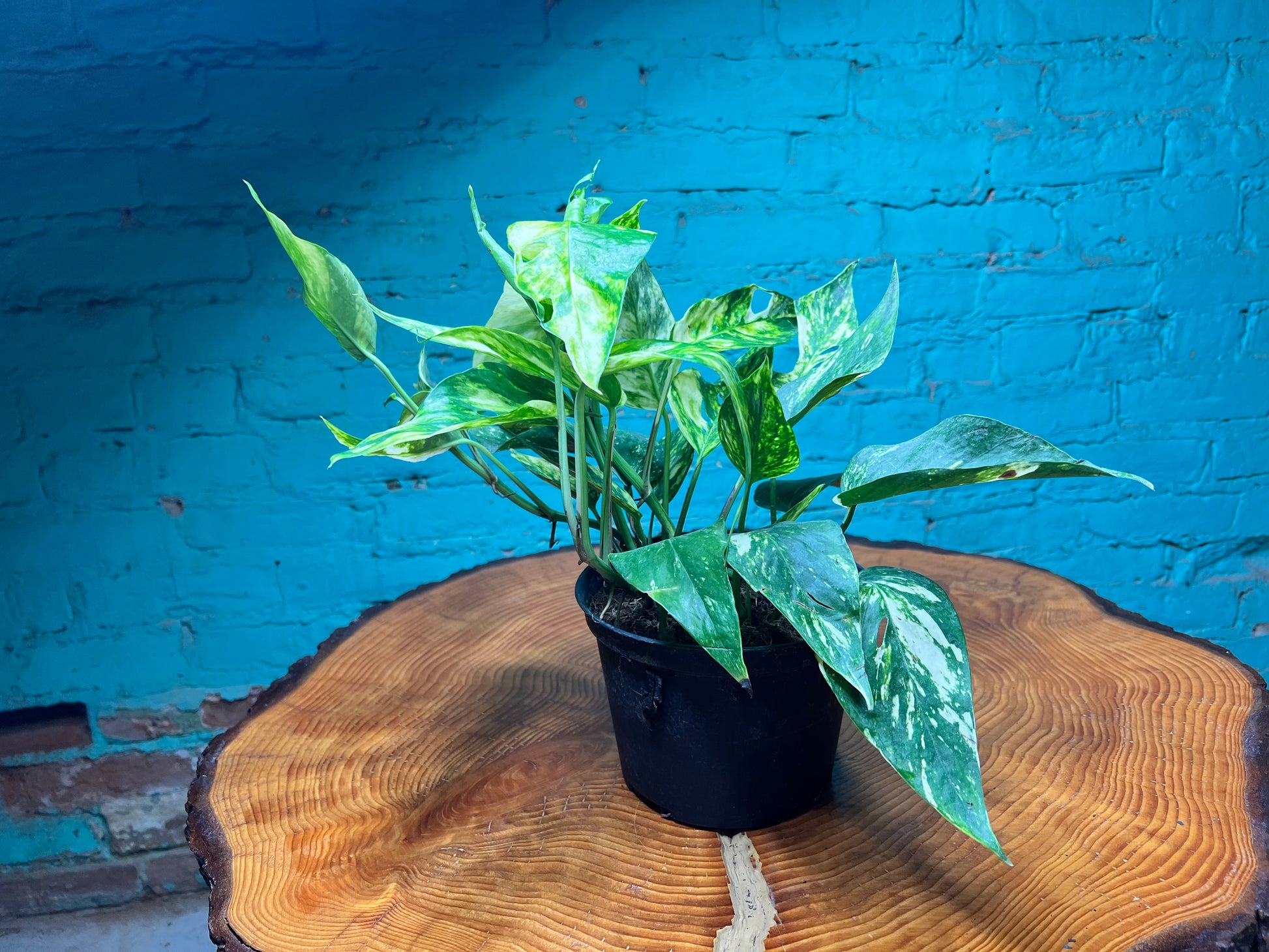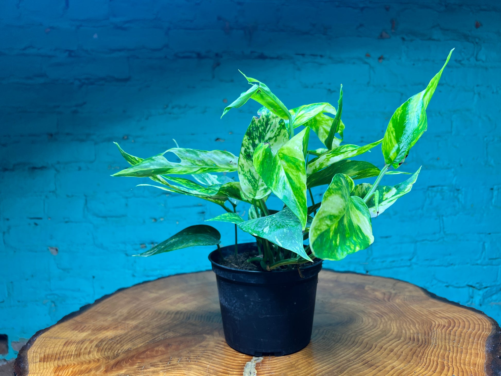 Epipremnum ‘Sunset’ is a striking pothos variety with golden-yellow variegation splashed across its green leaves, giving it a warm, sunlit appearance. Like other Epipremnum cultivars, it has a trailing and vining growth habit, making it a versatile choice for hanging baskets, shelves, or climbing supports. Its bright, marbled foliage brings a cheerful pop of color indoors, while still being hardy and easy to care for, making it suitable for both new plant owners and seasoned collectors.