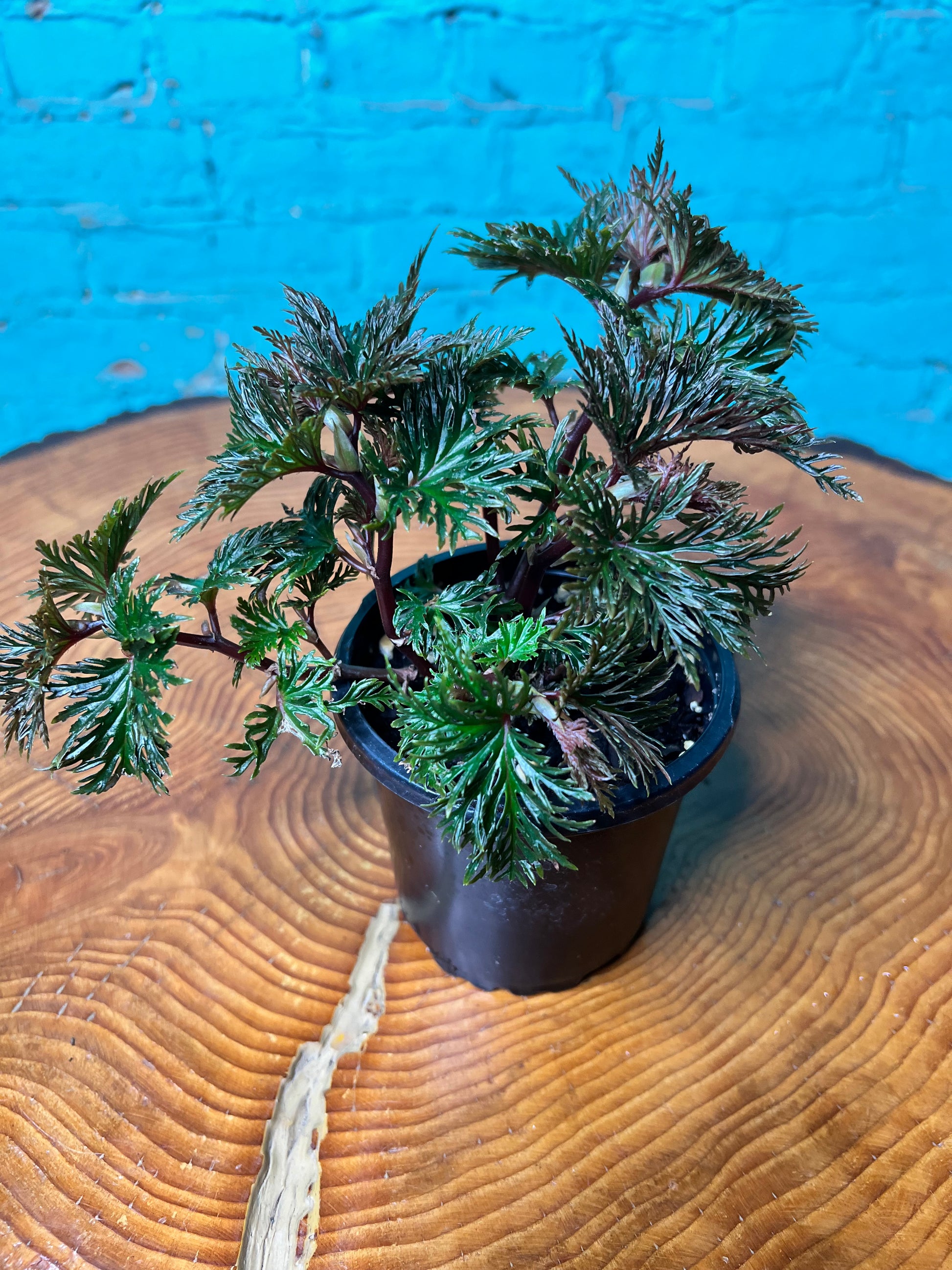 The Fern Leaf Begonia (Begonia fern-leaf) is a striking tropical plant known for its deeply lobed, fern-like foliage. It is believed to have originated in South America, particularly in regions with warm, humid climates such as Brazil. This begonia belongs to the rhizomatous group, meaning it grows from thick horizontal stems called rhizomes, and is primarily grown for its ornamental foliage rather than flowers. Its exotic leaf shape and unique texture make it a popular choice for indoor plant collections and shaded garden spots.