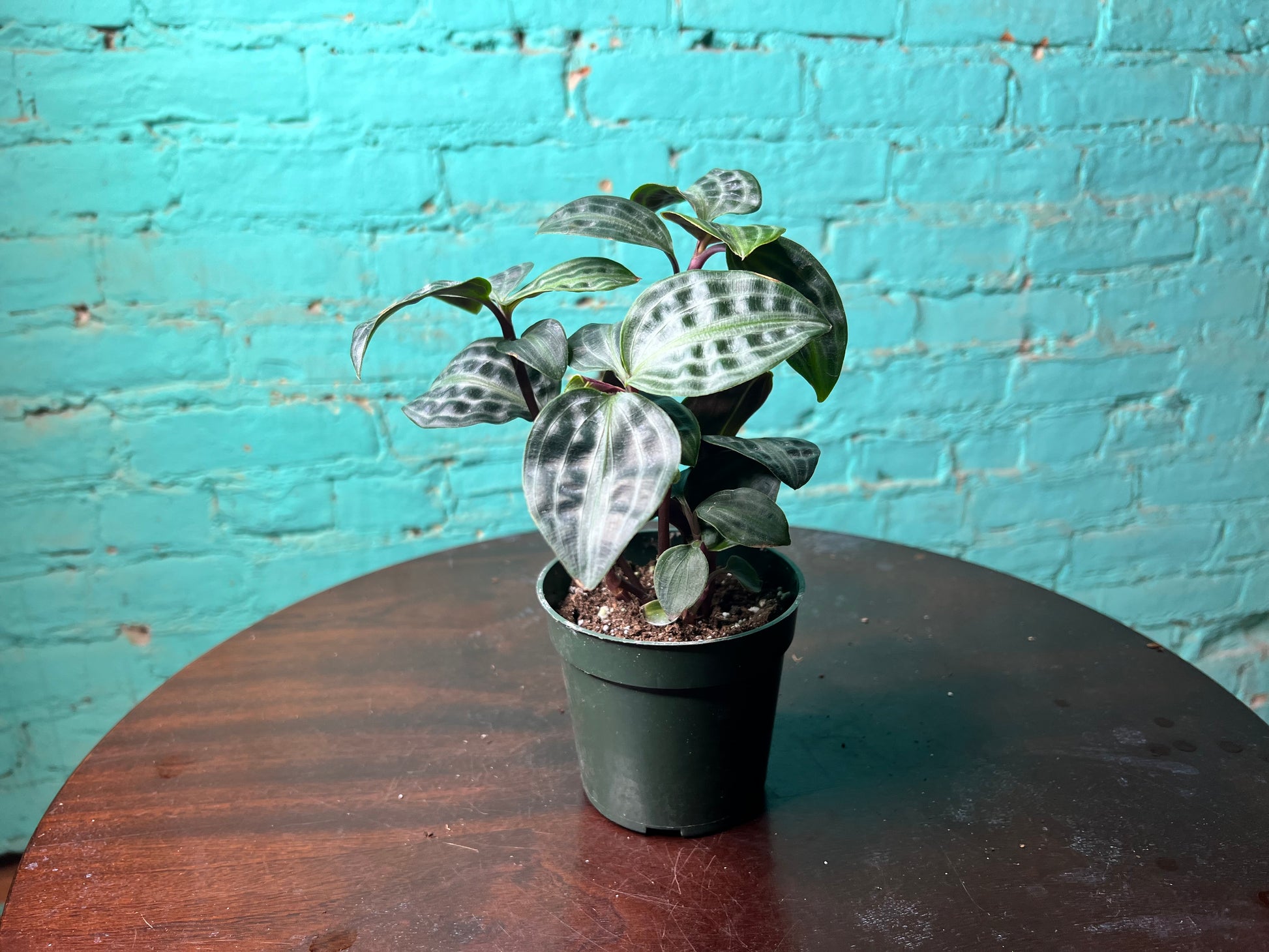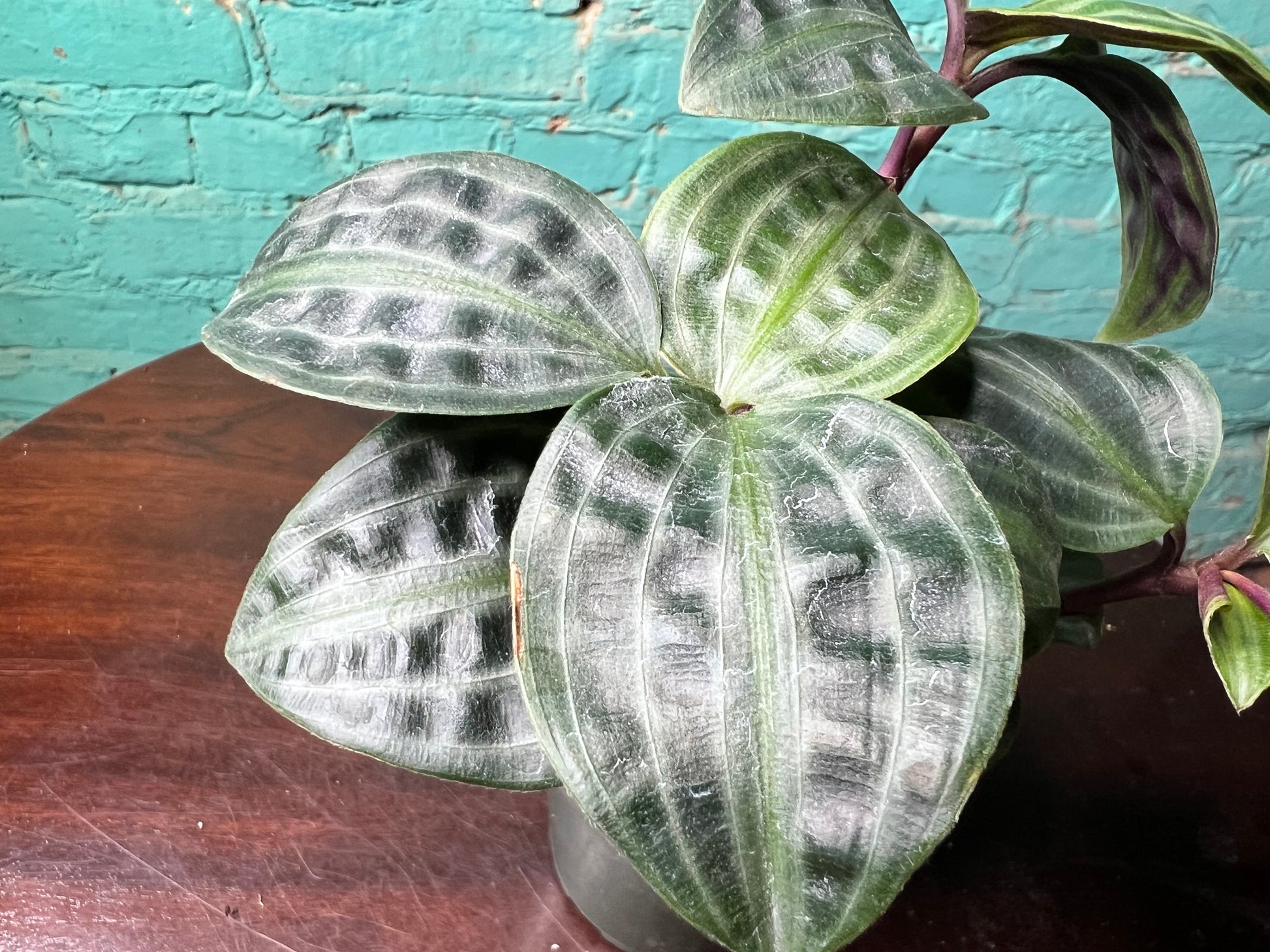 Geogenanthus poeppigii is a tropical understory plant native to the rainforests of Central and South America where it grows along the forest floor in humid shaded environments. The plant is highly desirable for its glossy dark foliage that can appear almost black in certain light with subtle purple tones along the undersides. Its compact growth and dramatic color contrast make it a striking foliage plant for indoor collections. Indoors it grows best in a north window within one to two feet of the glass where the light is gentle and consistent. An east window within two to three feet also supports healthy growth while protecting the leaves from strong midday exposure. If using a grow light place the plant directly under the light for ten to twelve hours daily so the foliage maintains its rich color and compact structure.