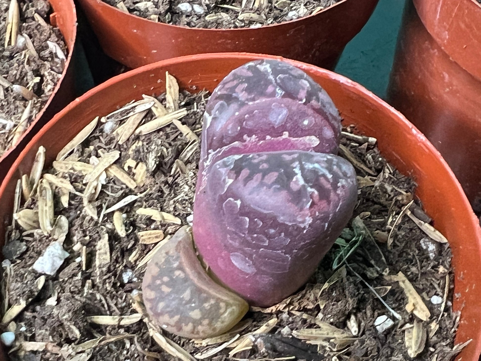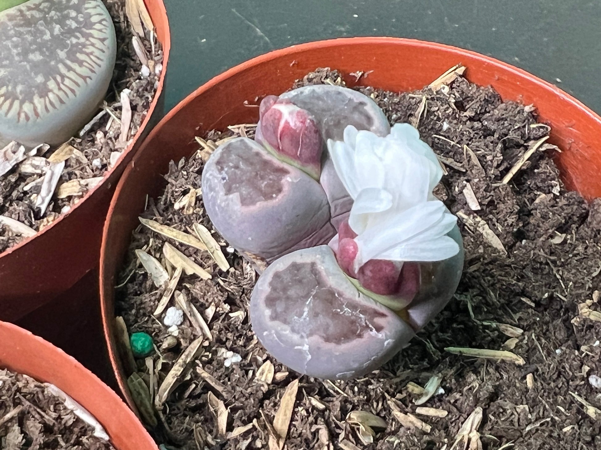 Living stones must be watered on a seasonal schedule that mimics the rainfall they would get in their natural habitat. Don’t water in summer or over the winter when the plant is dormant. Then drench the soil, allowing it to dry out completely before watering again—about 1-2 weeks. Once the new leaves begin forming in the spring, water whenever the soil dries out—just enough to make it slightly moist. Pause watering again in the summer during the plant's second dormant period. Resume watering in early fall, just before the plant is ready to flower. If the leaves start to completely shrivel up while the plant is dormant, you can give it a very small amount of water to plump them up again.