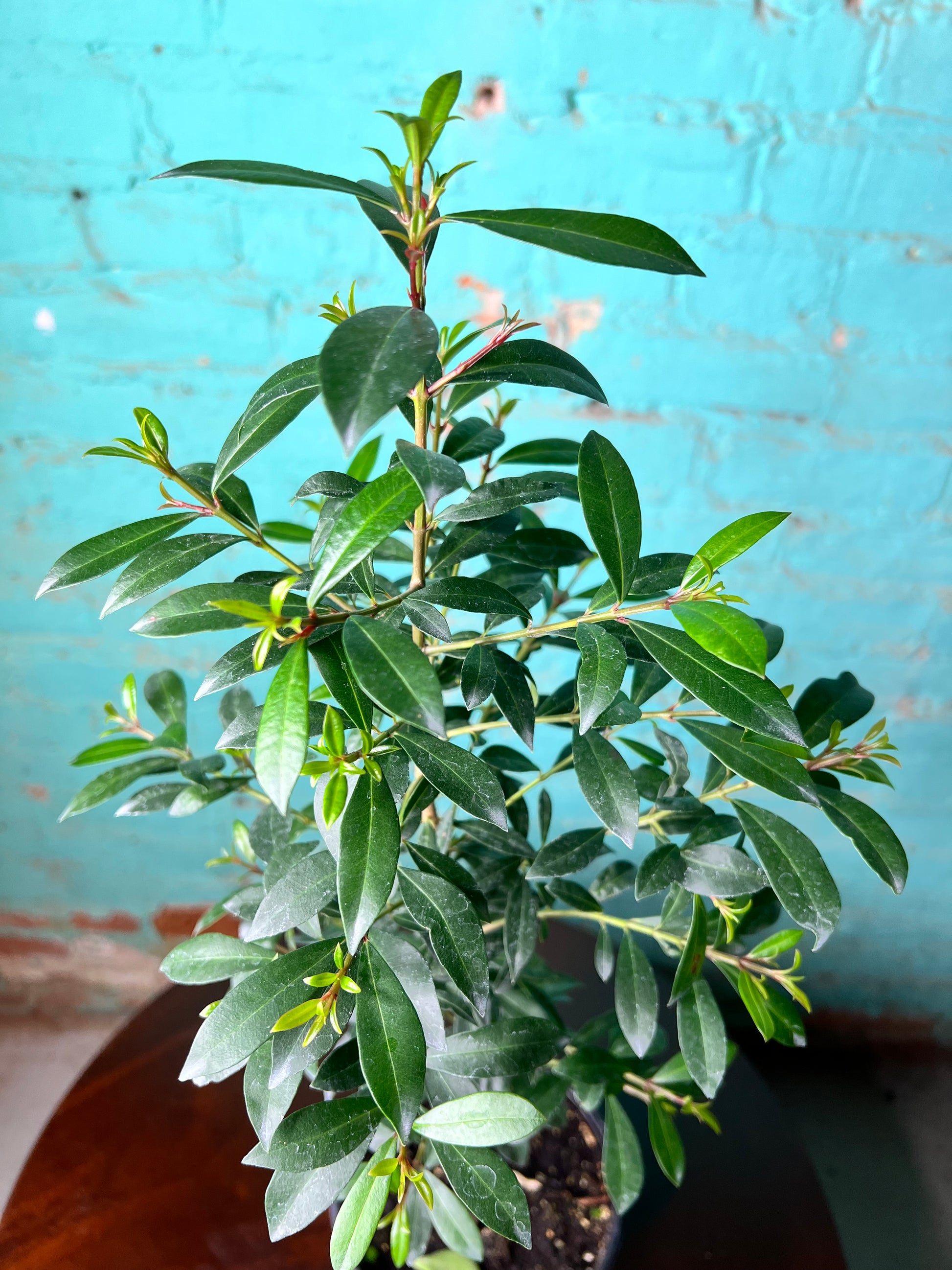 Syzygium paniculatum, also known as the Magenta Cherry or Australian Brush Cherry, is a glossy-leafed evergreen shrub or small tree prized for its colorful new growth, which emerges in rich shades of magenta before maturing to deep green. Native to Australia, this plant can be grown as an ornamental shrub, hedge, or even a bonsai. With proper care, it may produce small white flowers and edible, magenta-colored berries that give it its name.