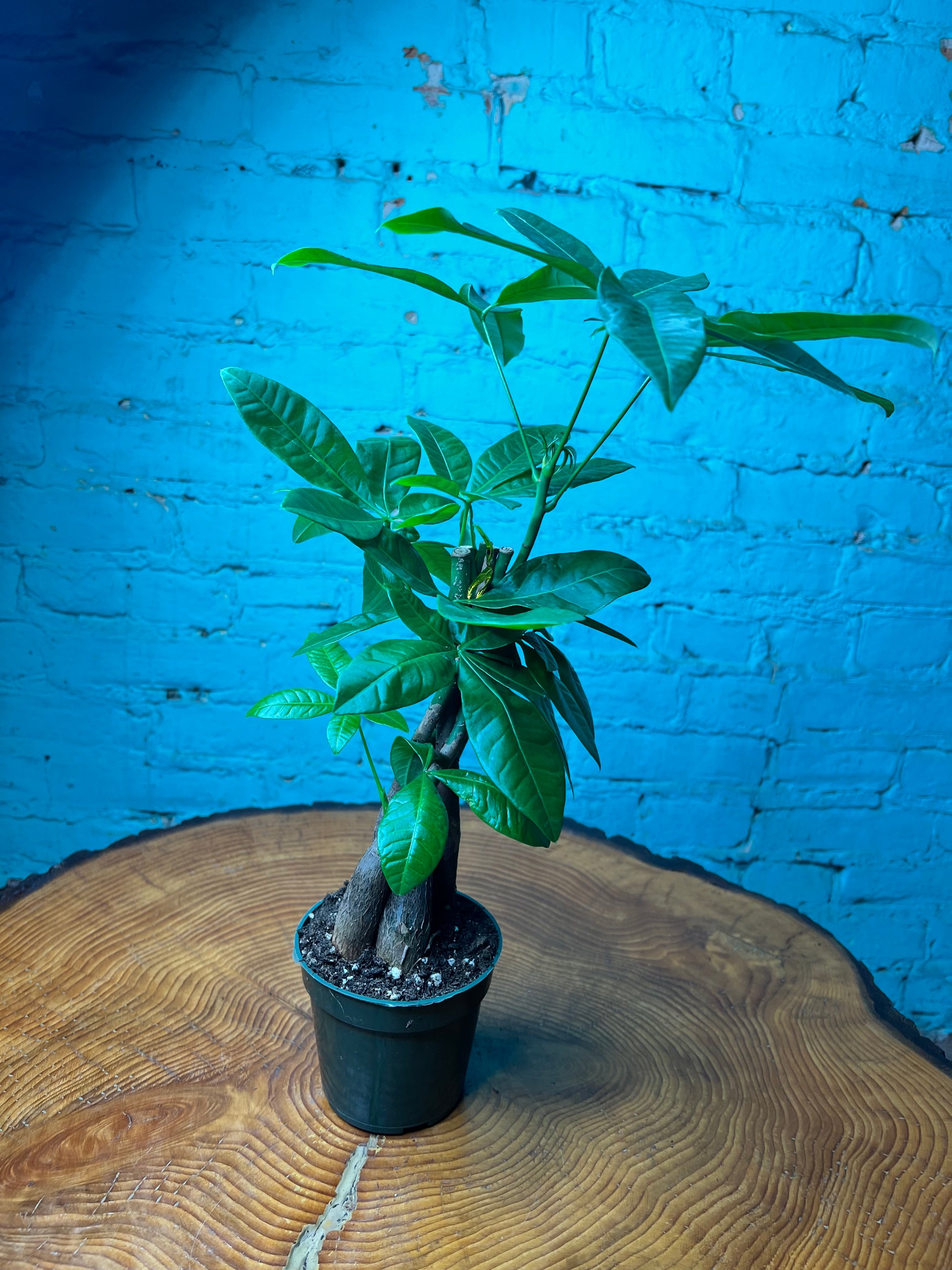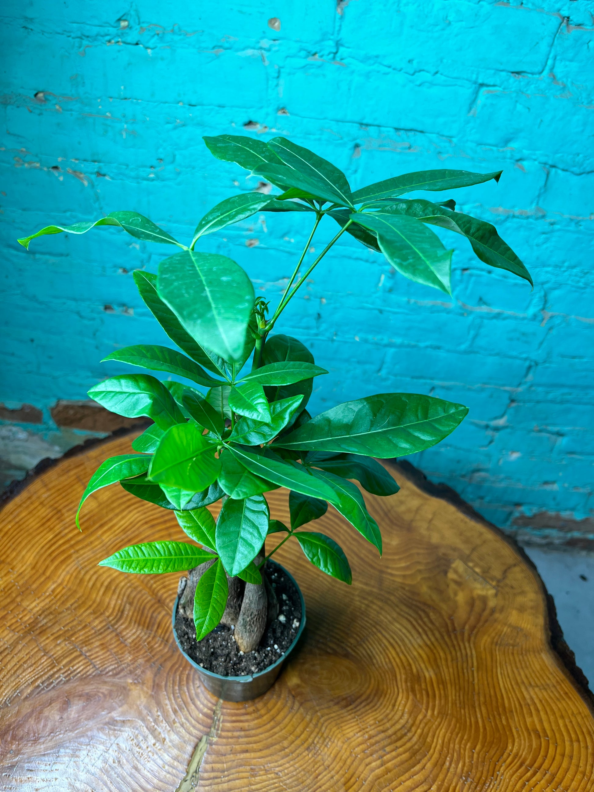 Most commonly, money trees are sold as small plants with a braided trunk made up of three, five, or seven stems. Braiding is thought to trap good fortune in its folds. The trees are braided at the nursery when they are young and will continue to grow this way as they mature.