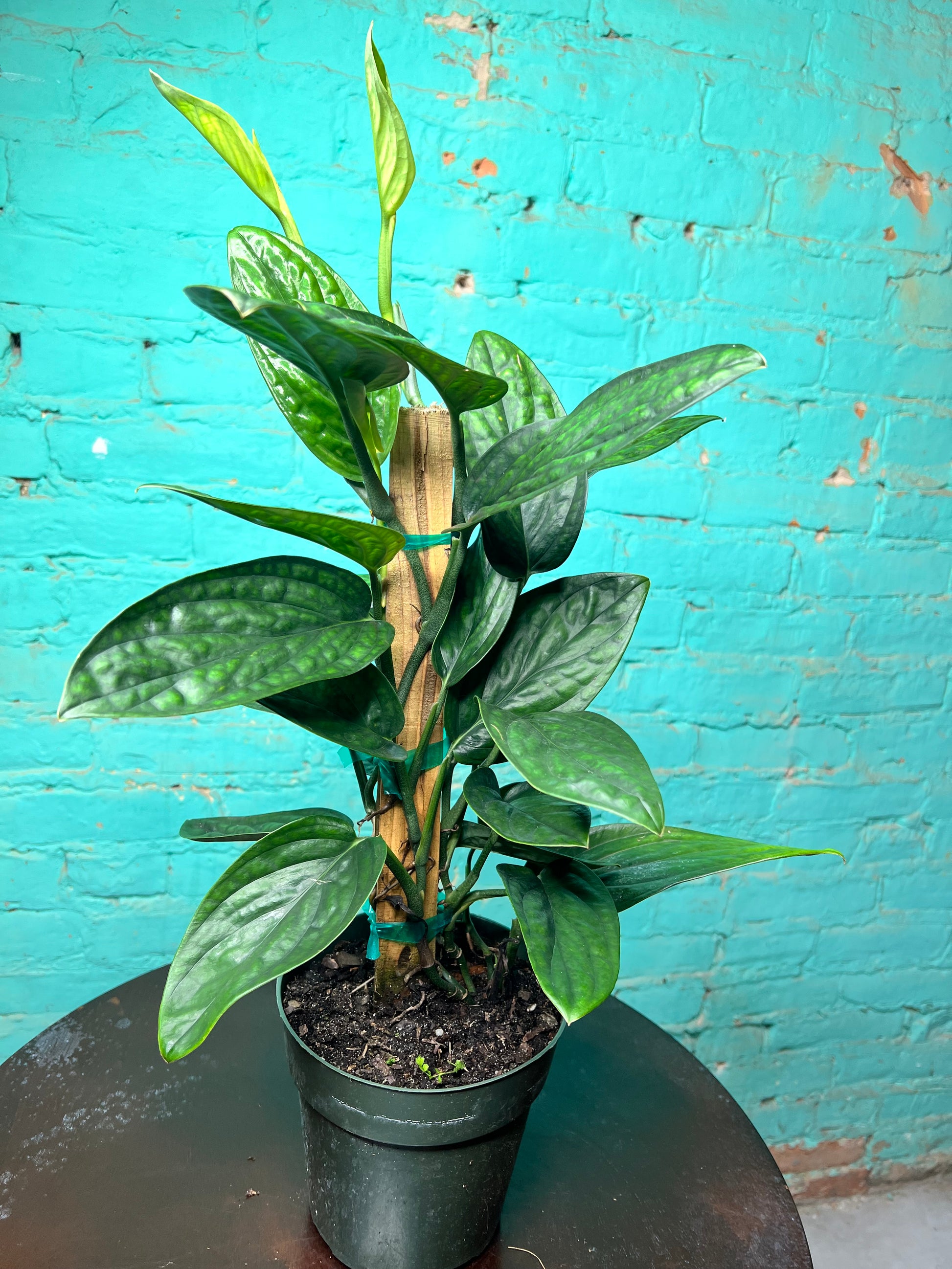 Monstera Peru, also called Monstera karstenianum, is a compact climbing species known for its thick, textured leaves that look almost quilted. Unlike the larger fenestrated Monsteras, Peru keeps its foliage solid and glossy, which makes it stand out as a unique addition to a collection. Its slow but steady growth habit makes it well-suited for both tabletops and climbing setups, where it will reward you with deep green, leathery leaves that look almost sculptural.