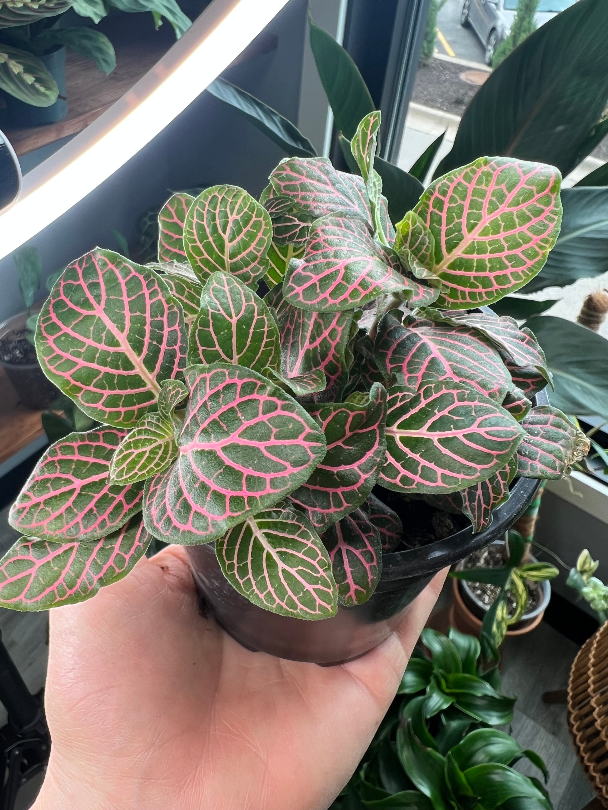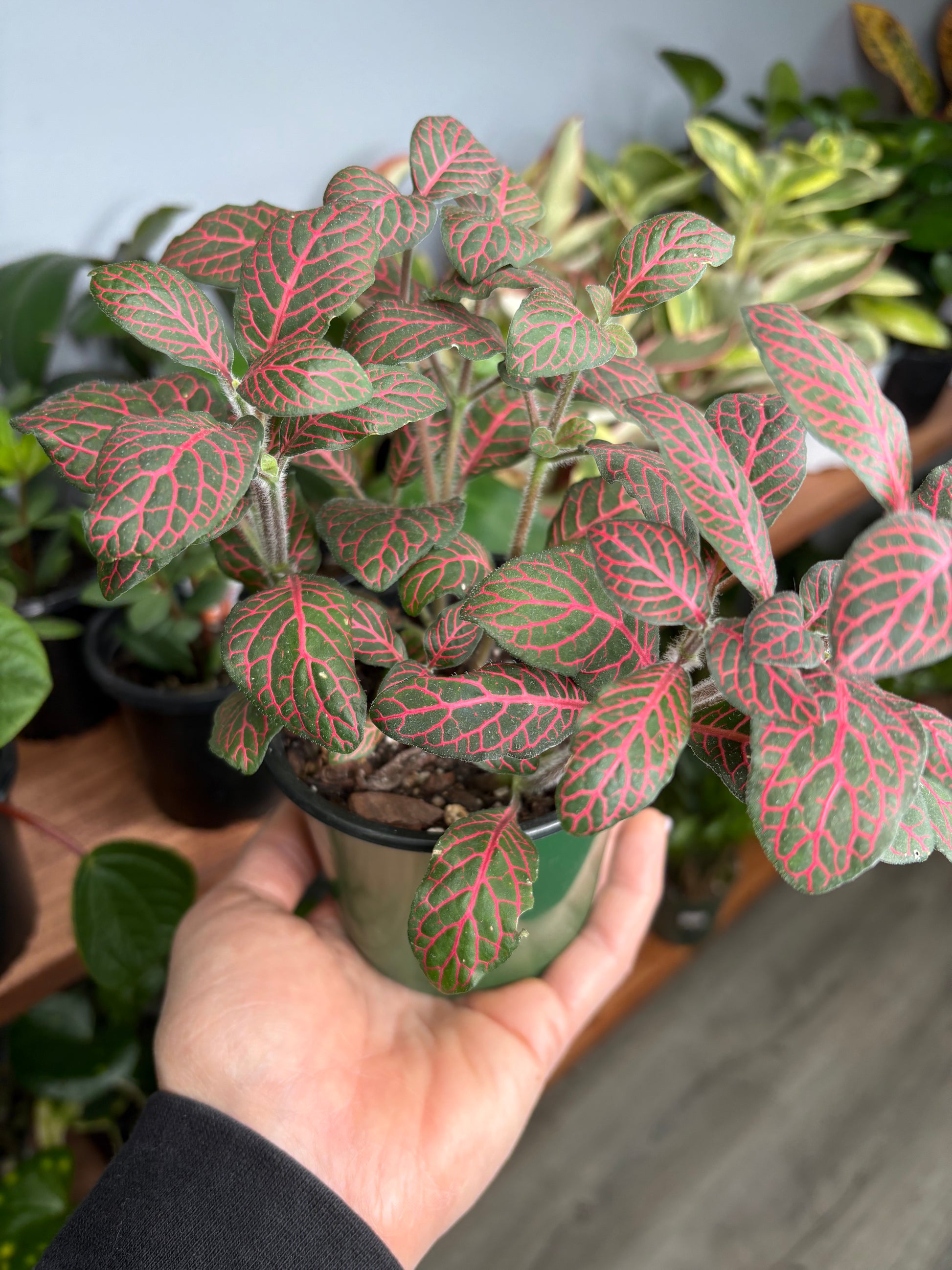 Fittonia ‘Pink Angel’ – Bright pink veining, perfect for a pop of color.