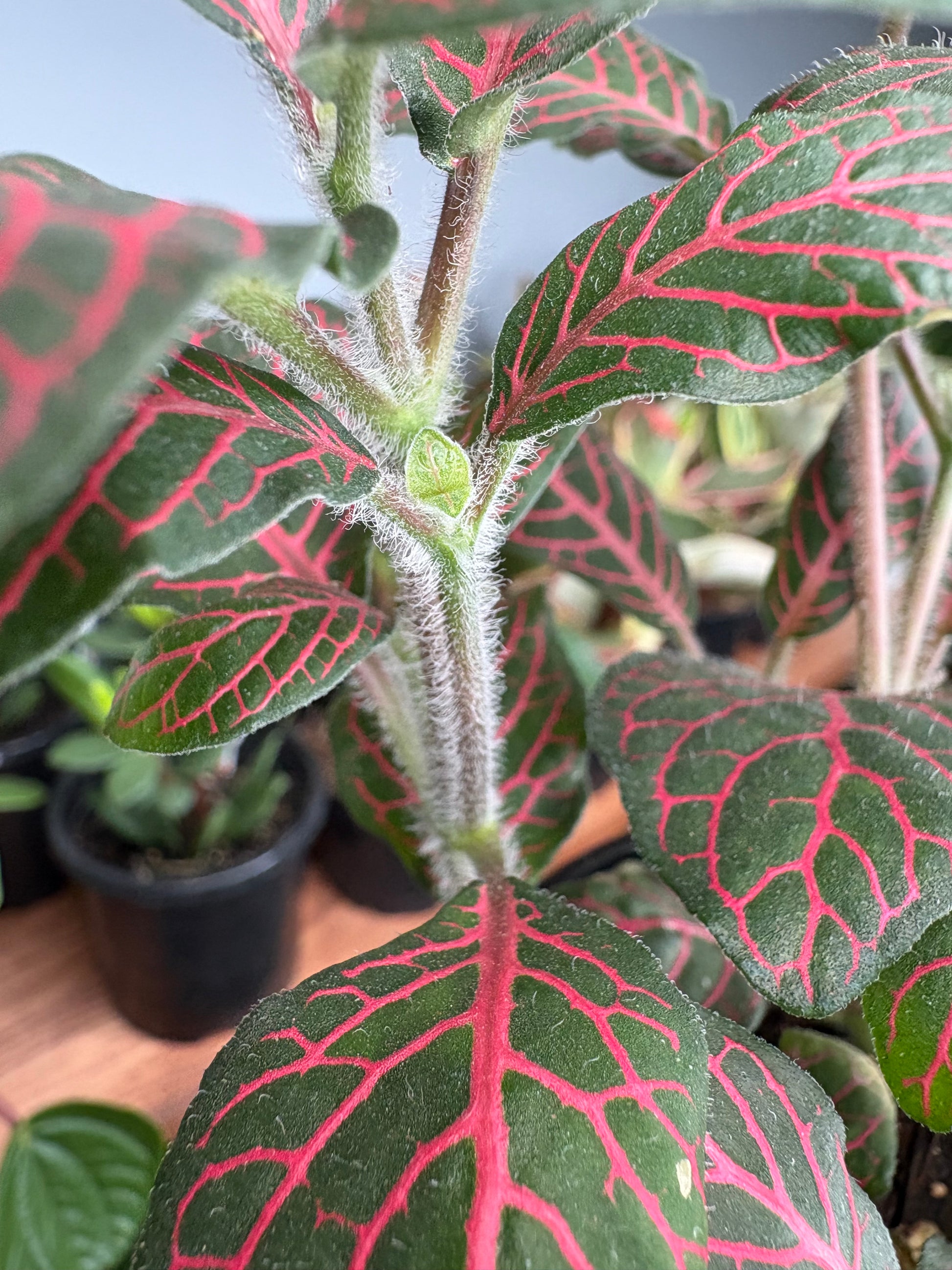 Fittonia ‘Red Star’ – Bold red veins on dark green leaves.