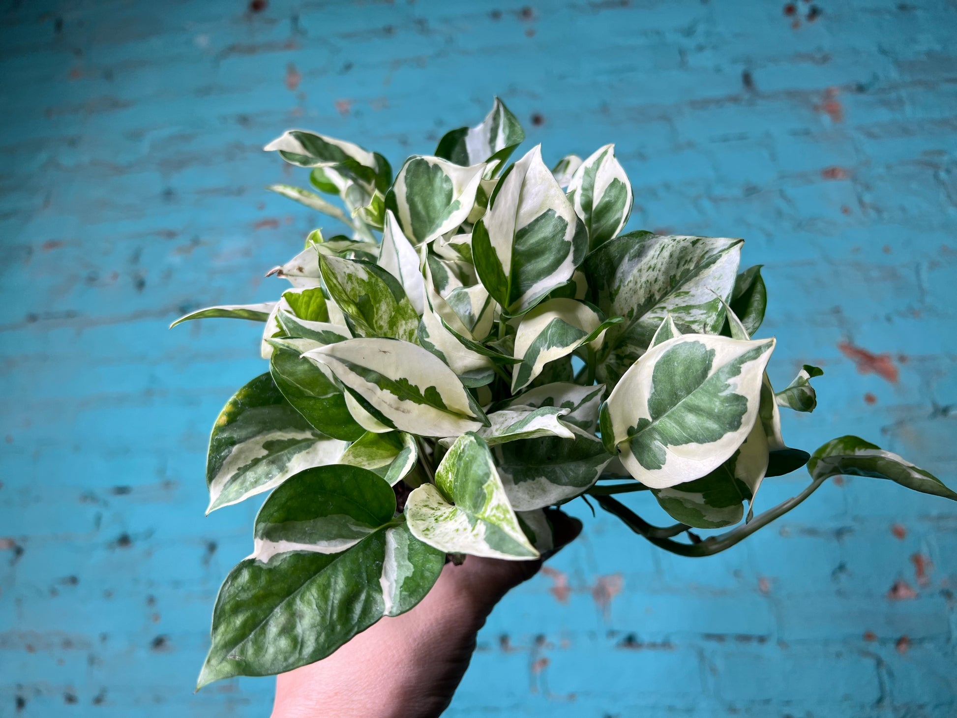 This pothos variety thrives in bright, indirect light but can tolerate medium light conditions as well. While it can survive in low light, its variegation will fade and growth will slow significantly. To maintain the striking contrast in the leaves, place it near an east- or north-facing window, or use sheer curtains to diffuse stronger sun. Avoid direct sunlight, as it can cause the white parts of the leaves to burn.