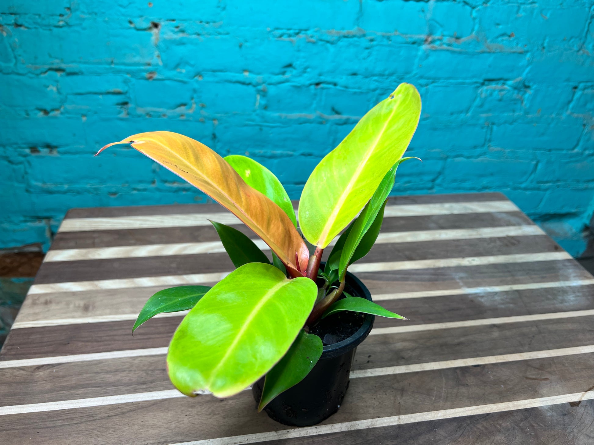 The color you find with the prince of orange is worthy of its royal name, bright new orange leaves that turn into bright light green foliage over time. It makes a fun and cheerful gift. This fast-growing philodendron is the perfect houseplant for beginners! This houseplant does best in bright indirect light, and its soil should be allowed to dry slightly between watering. Once Philodendron Prince of Orange has settled in, it can be a fast grower when properly cared for.