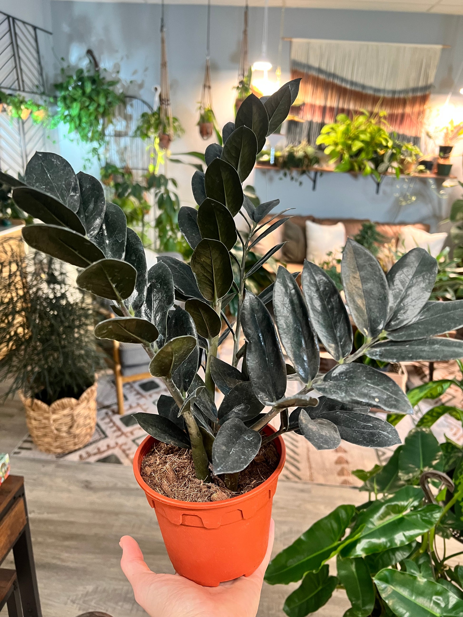 ZZ plants (Zamioculcas zamiifolia) are known for their shiny, deep green leaves and tough, adaptable nature. Native to Eastern Africa, ZZs are drought-tolerant thanks to their thick, potato-like rhizomes that store water. What makes them truly unique is their ability to thrive in places where other plants would struggle — they’re one of the few houseplants that can genuinely handle neglect. With their sculptural upright stems and slow, steady growth, ZZs add elegance and structure to any room.