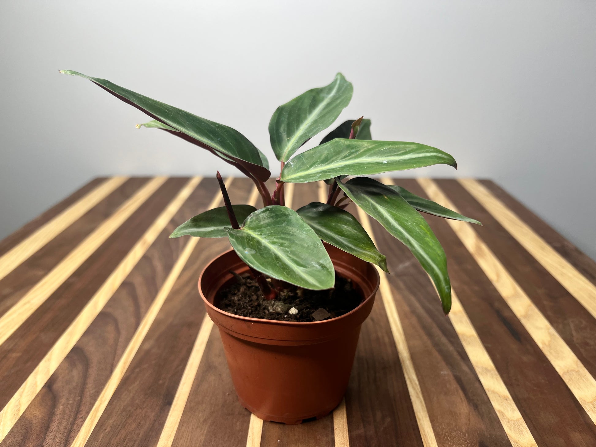 Stromanthe thalia, commonly known as Stromanthe 'Triostar' or Stromanthe sanguinea, is a dazzling tropical plant celebrated for its striking variegated foliage. Native to the rainforests of Brazil, it features long, lance-shaped leaves with a painterly mix of cream, green, and rosy-pink on top—and rich burgundy undersides. A member of the Marantaceae family (alongside calatheas and ctenanthe), Stromanthe is as much a piece of living art as it is a houseplant. Its vivid coloration makes it a favorite for brightening indoor jungles and shady corners alike.