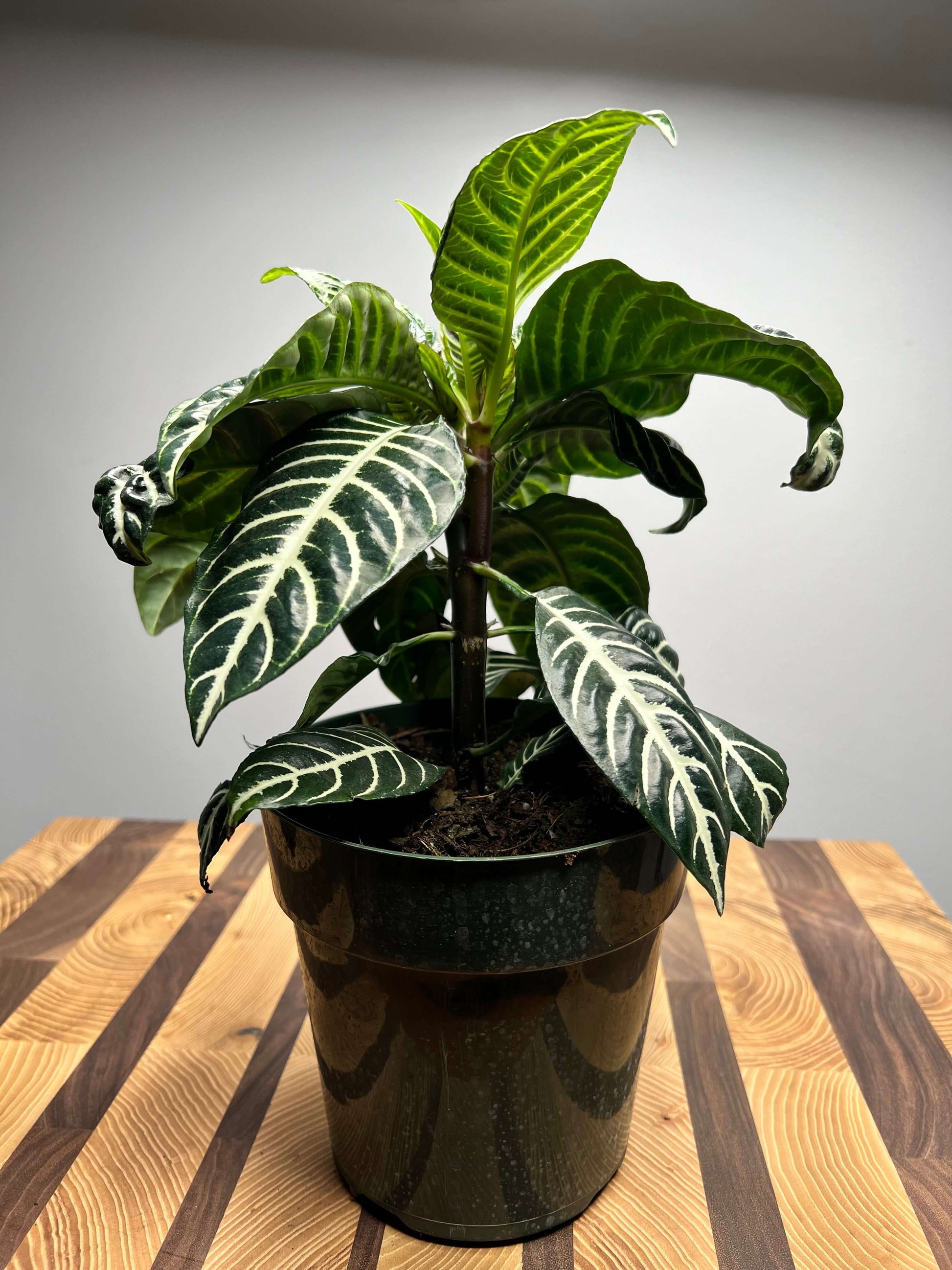 Because Zebra Plants come from humid, tropical forests, they need consistently moist soil and higher humidity levels than many other houseplants. The soil should be kept evenly damp but never soggy, as too much water can lead to root rot. Misting, pebble trays, or a room humidifier will help prevent the leaf edges from browning. With the right balance of light, water, and humidity, the Zebra Plant rewards you with lush, patterned leaves and, on occasion, a showy flower bract that adds a pop of golden color.